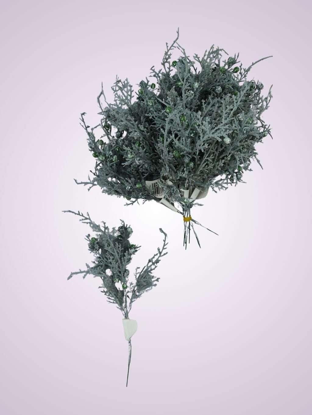 Popis : Juniperus z guličkami z pvc materiálu s celkovou dĺžkou 26 cm , je vhodným doplnkom na výrobu vianočných dekorácií na dvere